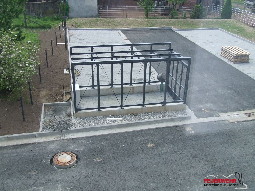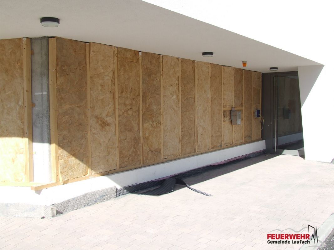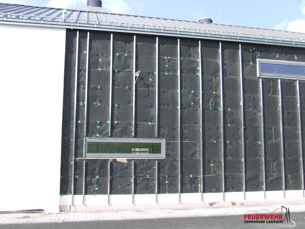Begonnen wurde auch die Arbeiten an der Holzfassade an der Durchfahrt bzw. am Haupteingang Feuerwehr.